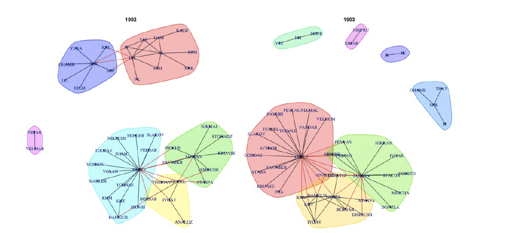 Network data of Ottoman nationalist elites from various ethnic backgrounds derived from primary and secondary sources in Turkish, English, Albanian, Bulgarian, and French. Data includes 2019 interactions of 606 elites over 30 years.